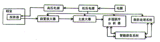 能譜數(shù)據(jù)獲取與處理系統(tǒng):由ADC智能獲取接口和計(jì)算機(jī)組成。探測(cè)器到ADC進(jìn)行模—數(shù)轉(zhuǎn)換,智能獲取接口對(duì)ADC的每個(gè)復(fù)換碼進(jìn)行實(shí)時(shí)處理、顯示、數(shù)據(jù)壓縮,并每隔一定時(shí)間將已壓縮的數(shù)據(jù)由接口傳送至計(jì)算機(jī),已進(jìn)行譜顯示的更新,每個(gè)譜的長(zhǎng)度、寬度、停機(jī)方式和條件,起、停都由計(jì)算機(jī)獨(dú)立控制。在測(cè)量過程中,計(jì)算機(jī)可以停機(jī)或處理其它數(shù)據(jù)。