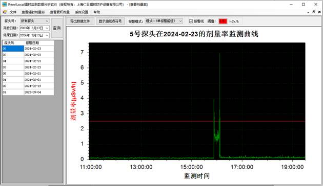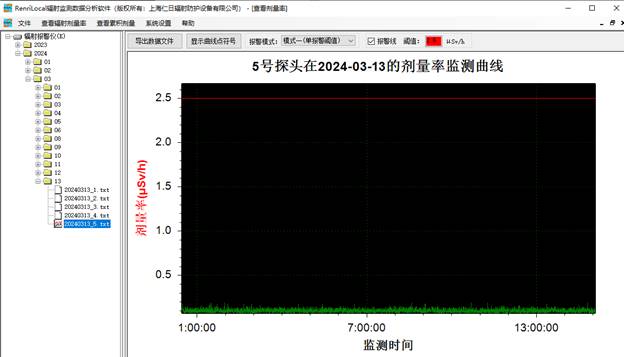 6、數(shù)據(jù)分析:免費(fèi)提供功能強(qiáng)大的RenLocal輻射監(jiān)測(cè)數(shù)據(jù)分析軟件,可通過(guò)曲線和棒狀圖的形式分析歷史劑量率和累積劑量數(shù)據(jù)以及實(shí)時(shí)查詢(xún)報(bào)警數(shù)據(jù)與統(tǒng)計(jì)分析等